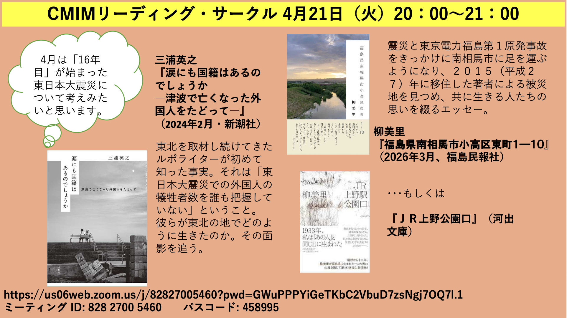 4月のリーディングサークルの読本は、「東日本大震災」について改めて考える時としたいと思います。