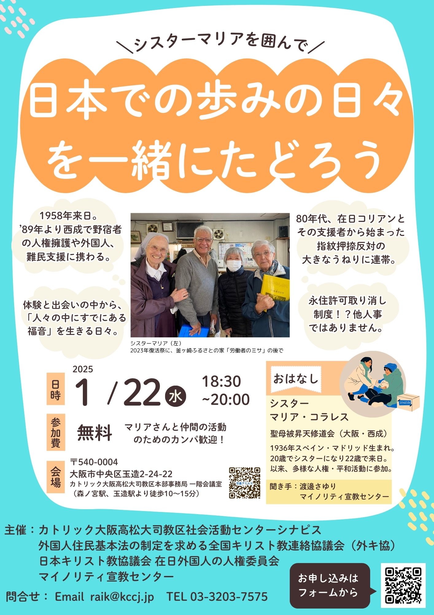 当日、お話の聞き手はマイノリティ宣教センター共同主事 渡邊さゆり が担当します