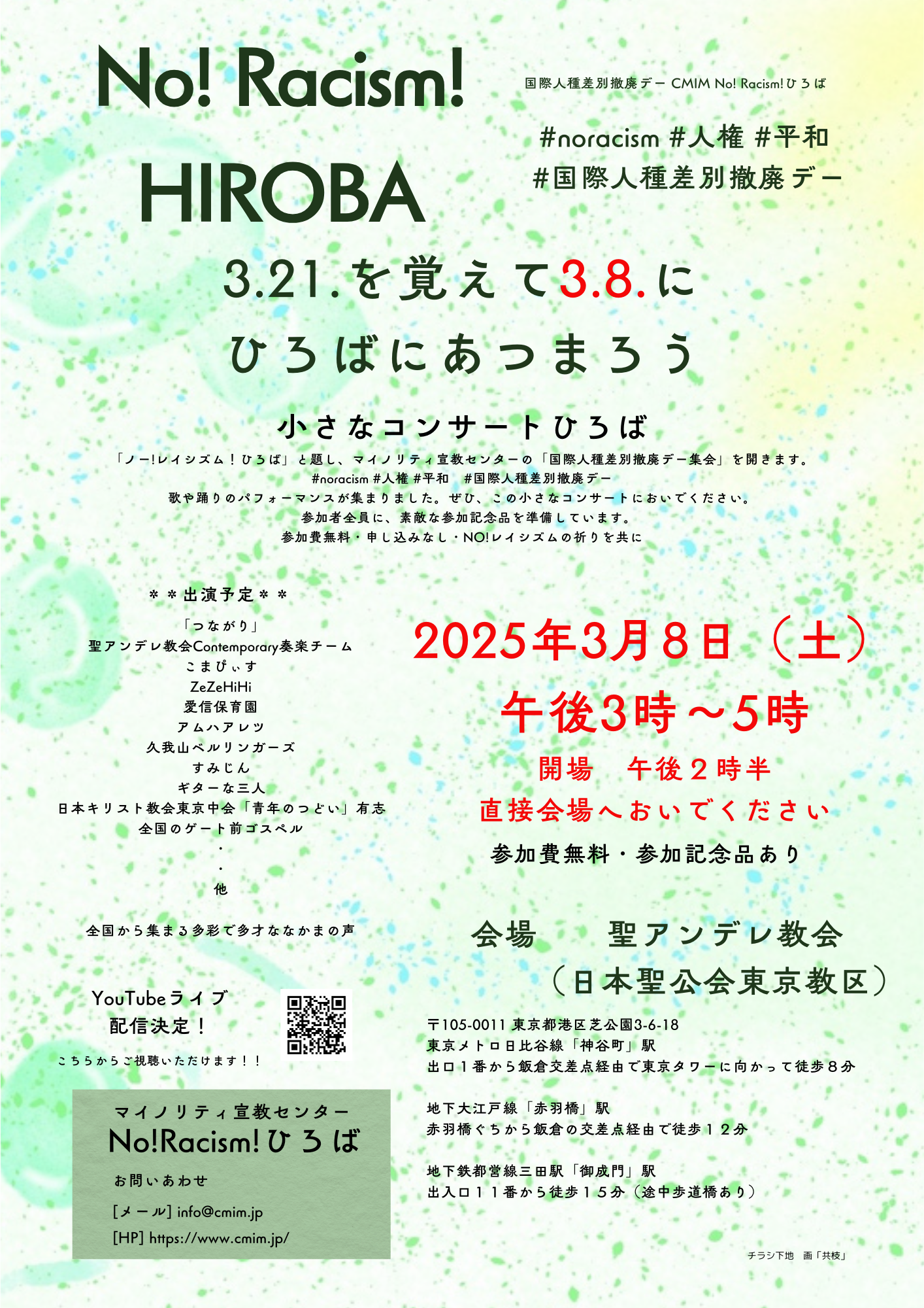 国際人種差別撤廃デー(3月21日)を覚えて、マイノリティ宣教センターはNO! RACISMひろばを開催します。