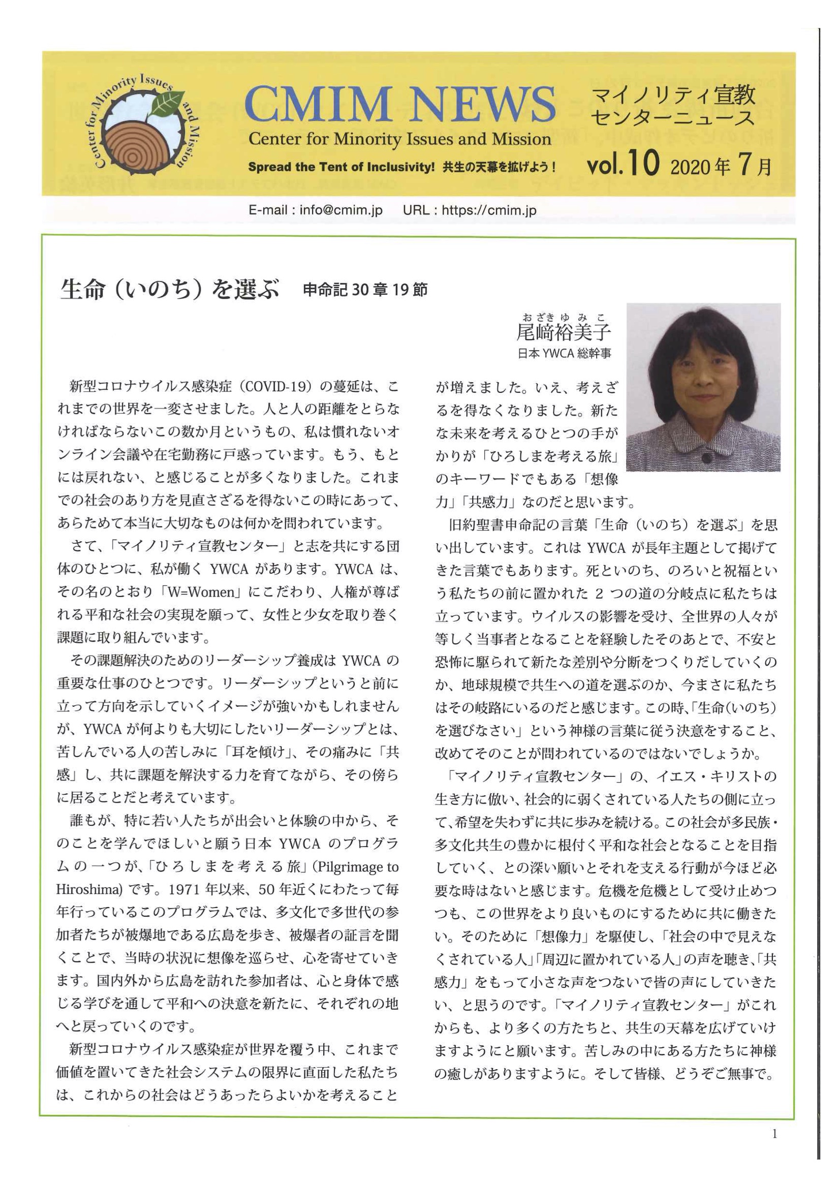 マイノリティ宣教 センターニュース 第10号 2020年7月15日